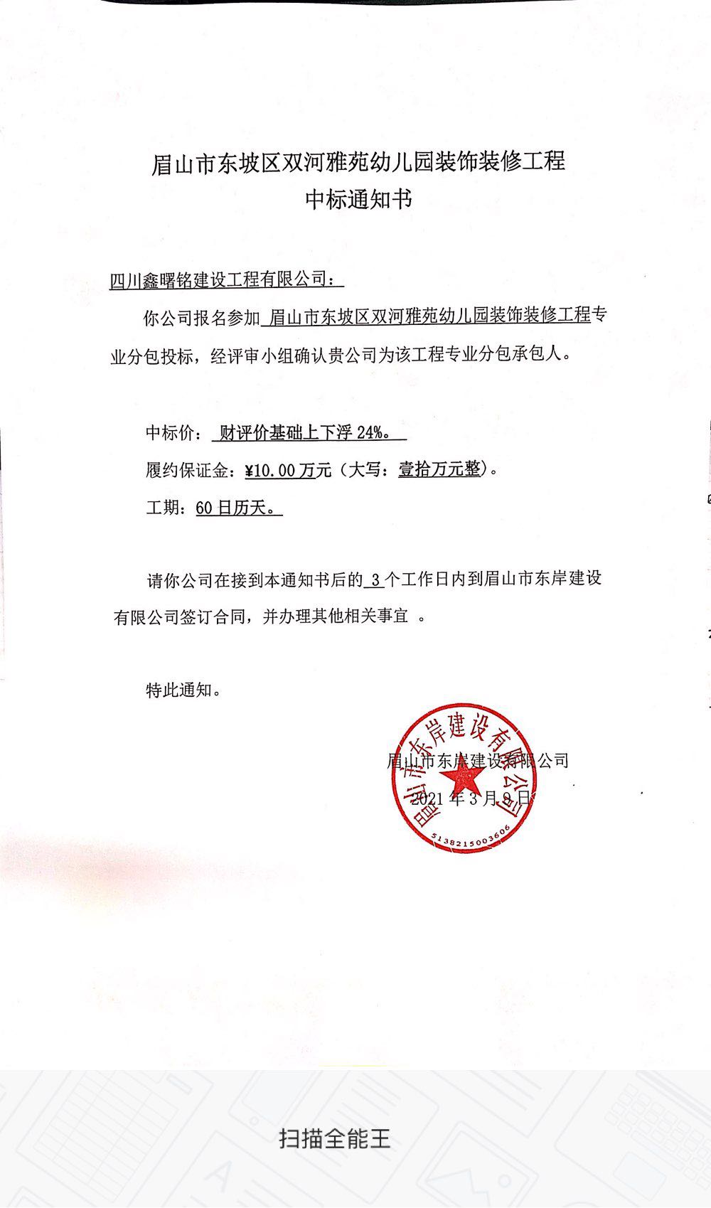眉山市東坡區(qū)雙河雅苑幼兒園裝飾裝修工程中標公示